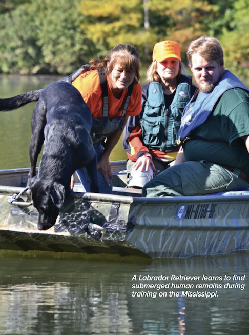 Los perros pueden oler un aroma minutos después de la muerte o años después. En algunos estudios encontraron restos óseos de 25 años enterrados en un área de 300 por 150 pies. Hurst trabaja con un grupo de voluntarios, NecroSearch International, Inc., que reúne a expertos de una variedad de disciplinas, desde botánica, antropología y entomología hasta análisis informático, para ayudar a las fuerzas del orden público a resolver casos de hace décadas. Los rastreadores caninos son importantes en muchas de estas búsquedas.